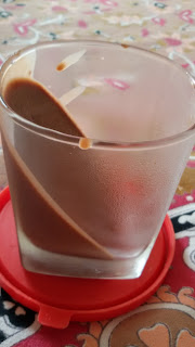 If you want to give the nutella panna cotta a slanting effect, place the glasses into small bowls with a slight slant(as shown in picture). Make sure they balance well. Once they are balanced with a slight slant, pour the nutella mixture into the glasses.